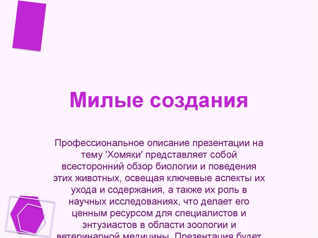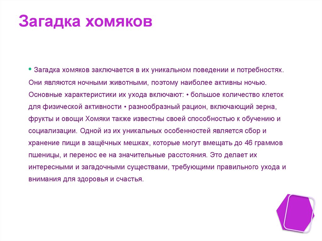 Загадка хомяков• Загадка хомяков заключается в их уникальном поведении и потребностях.