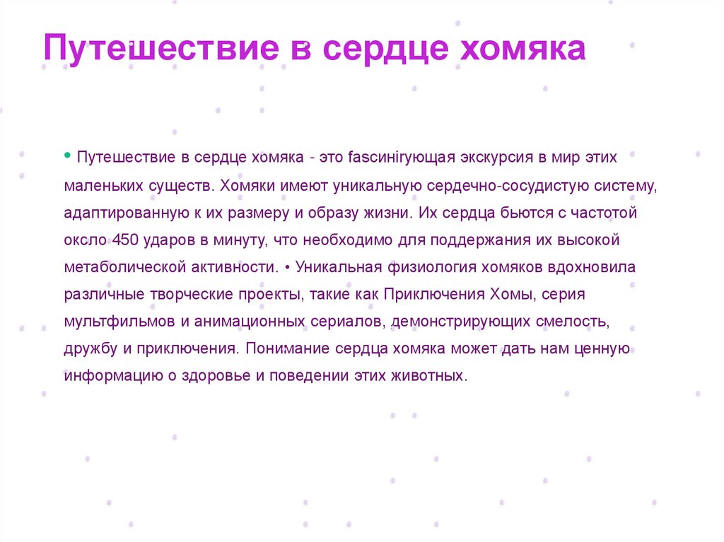 Путешествие в сердце хомяка• Путешествие в сердце хомяка - это fascинirующая экскурсия в мир этих