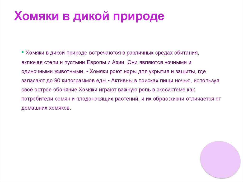 поведения. Хомяки обладают интересными особенностями:• Хомяки являются