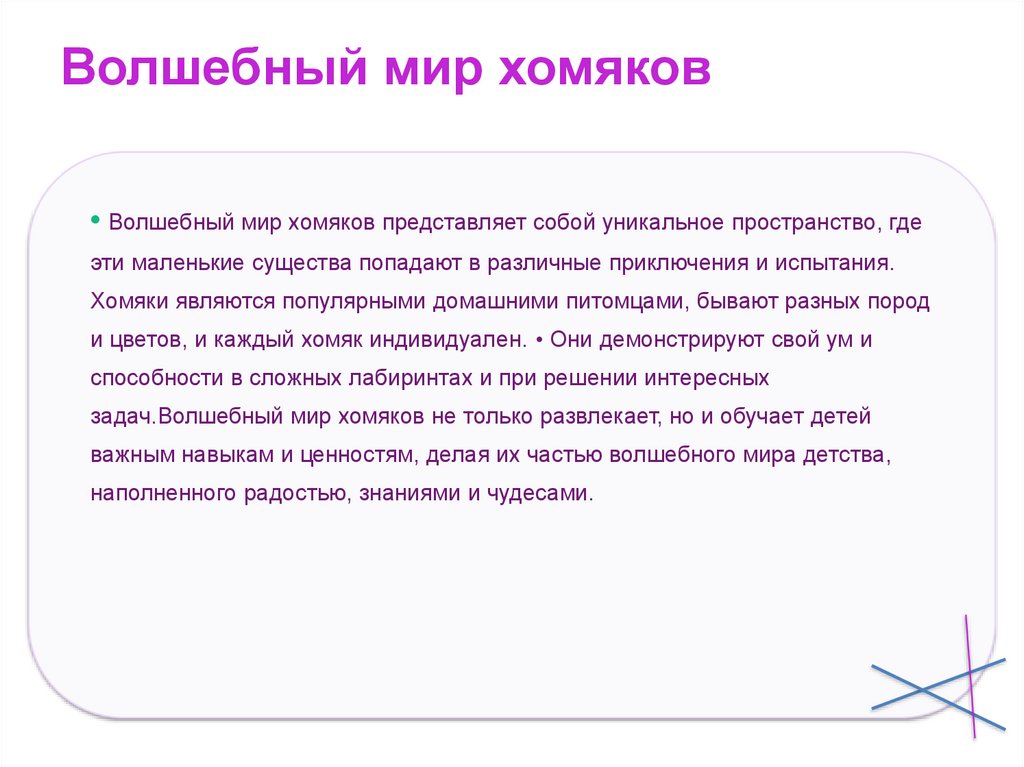 Большой мир хомяков• Большой мир хомяков представляет интерес для изучения и наблюдения.