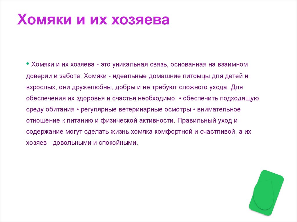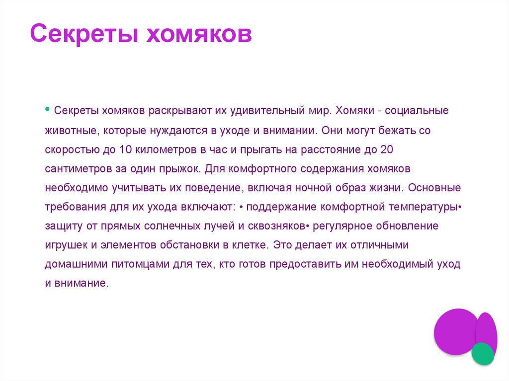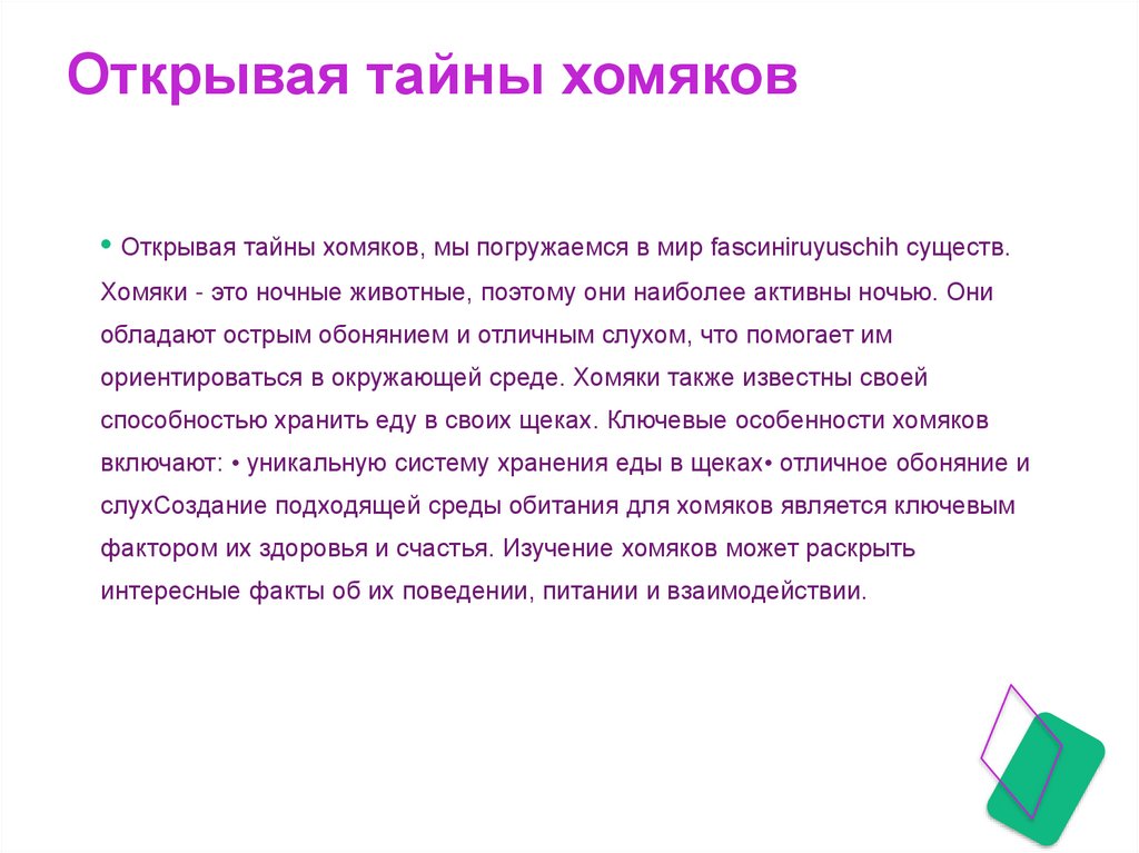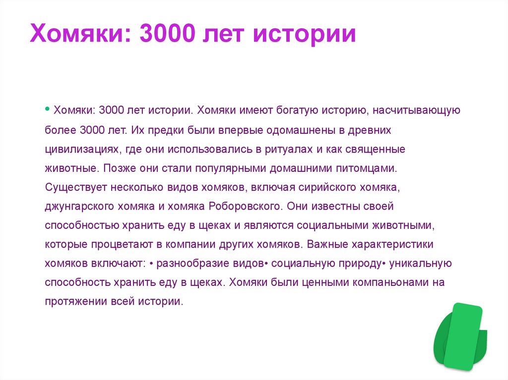 уходу. Некоторые интересные факты о хомяках включают: • более 20