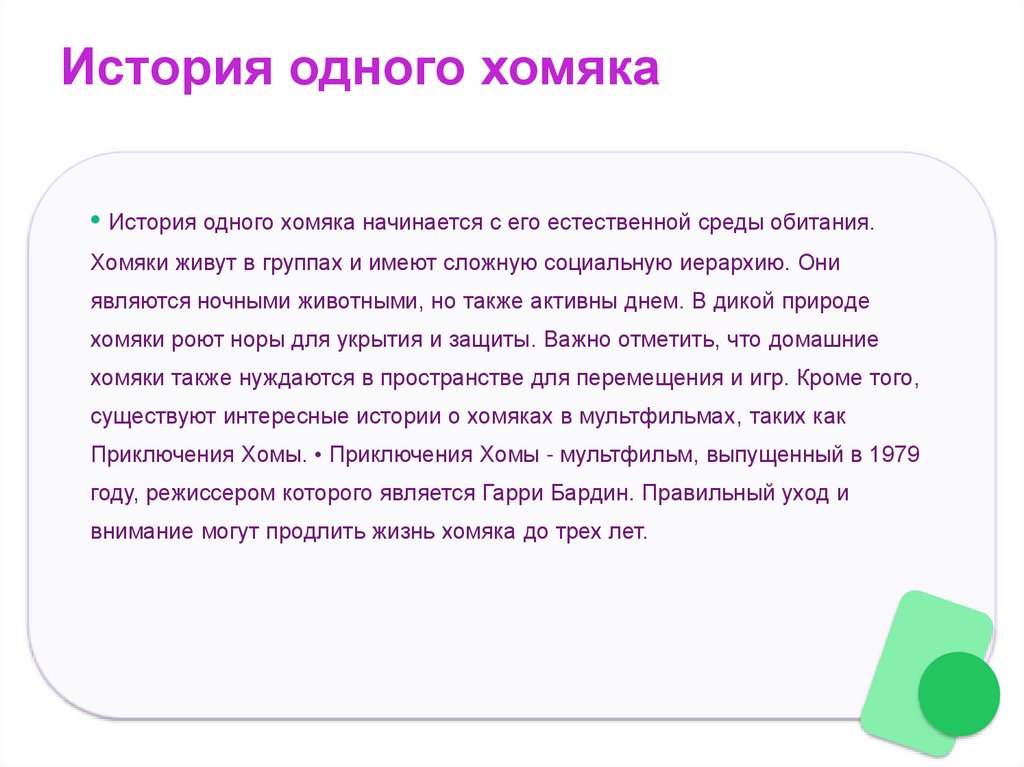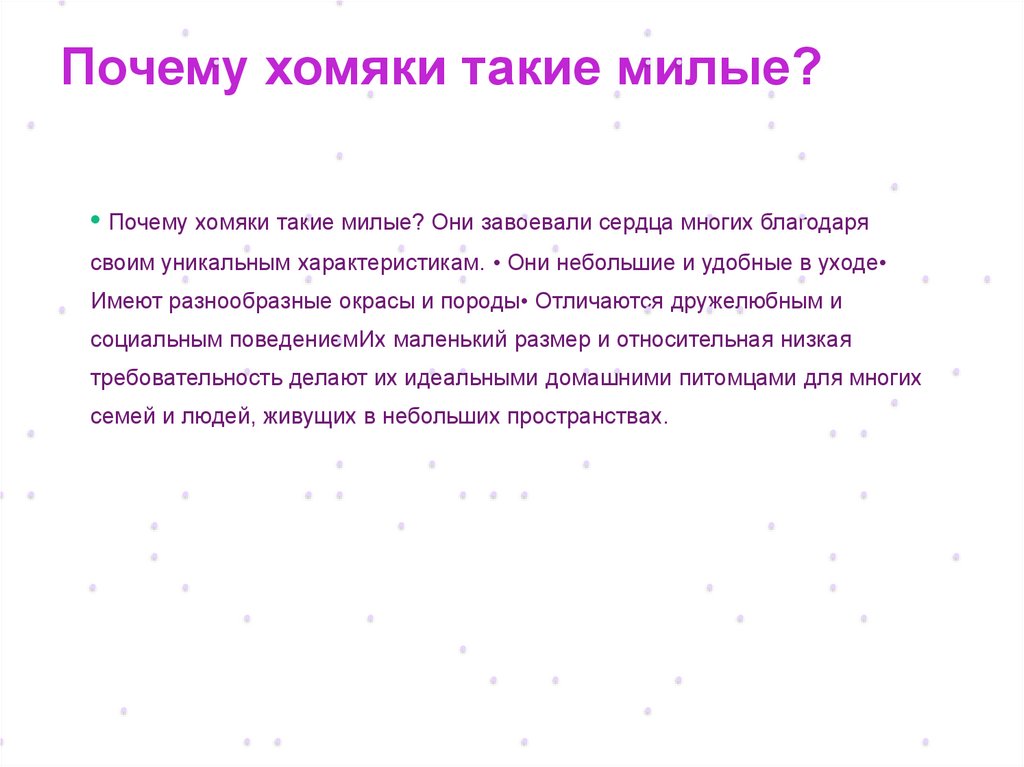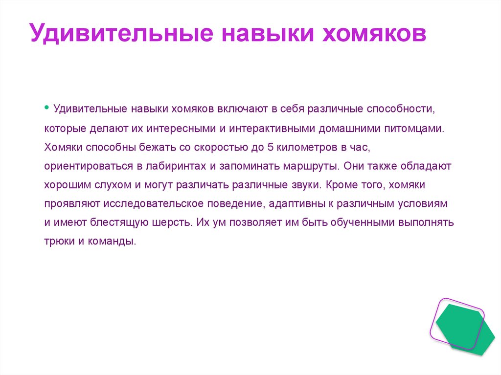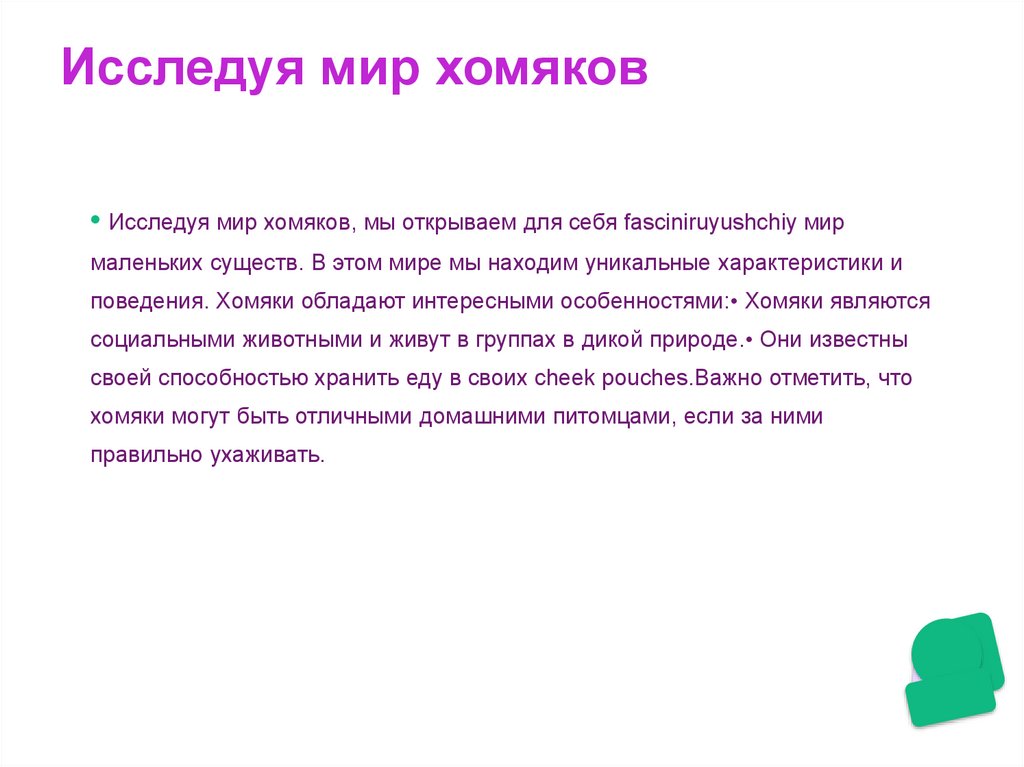 уходу. Некоторые интересные факты о хомяках включают: • более 20