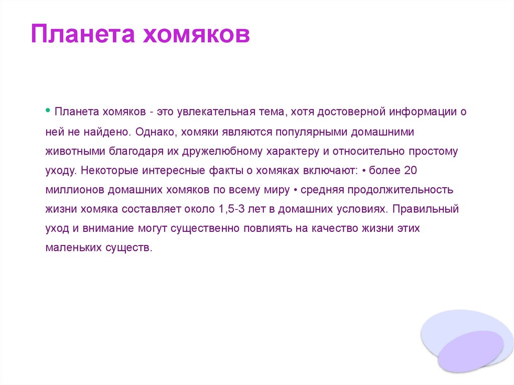Планета хомяков• Планета хомяков - это увлекательная тема, хотя достоверной информации о