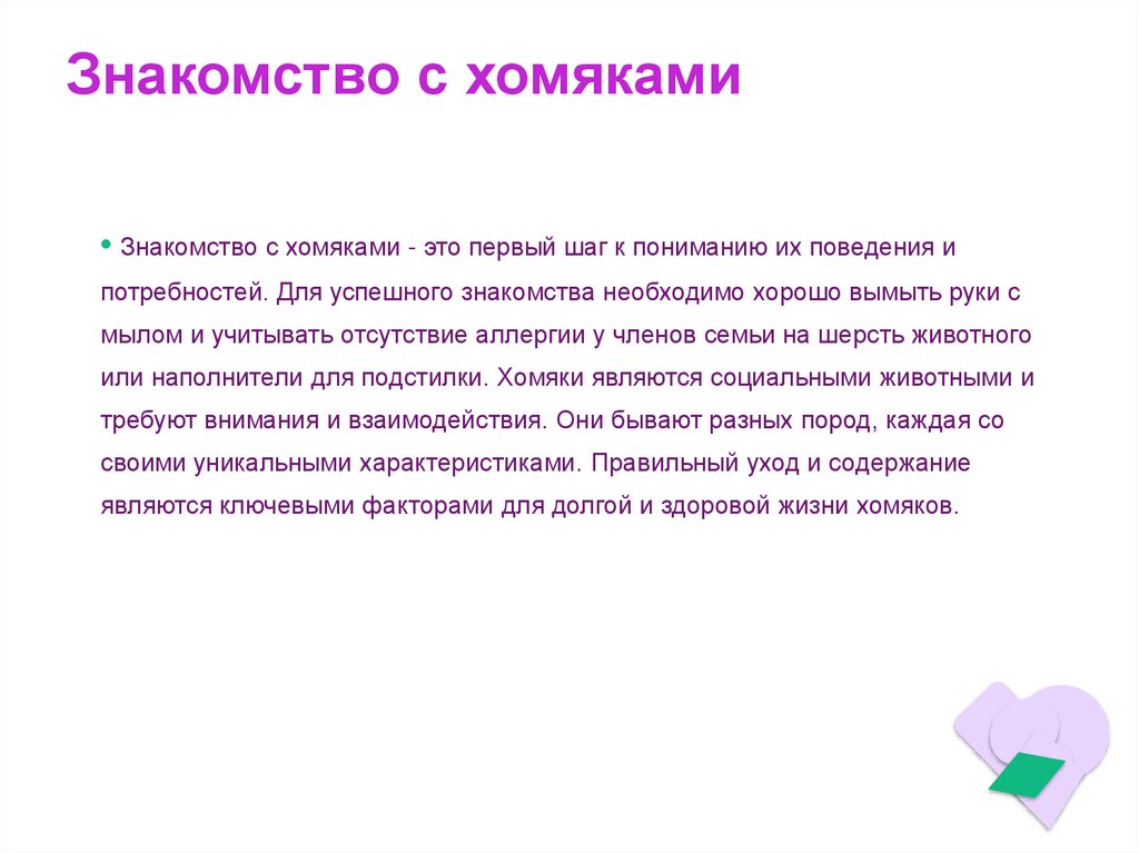 Знакомство с хомяками• Знакомство с хомяками - это первый шаг к пониманию их поведения и