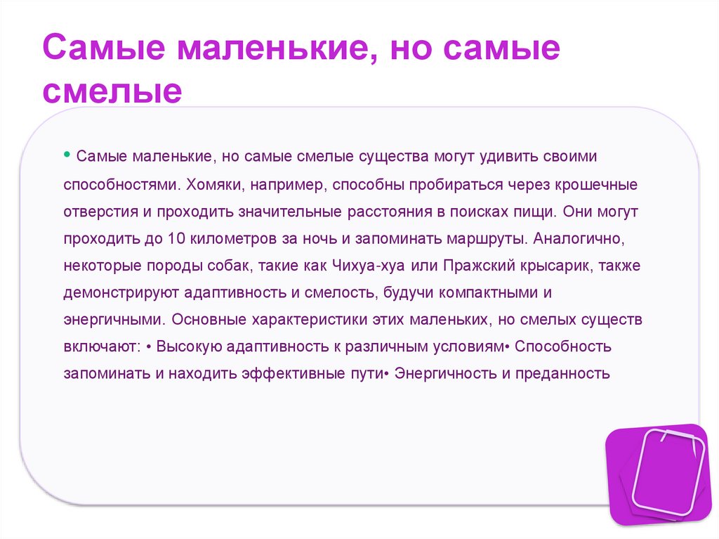 энергичными. Основные характеристики этих маленьких, но смелых существ