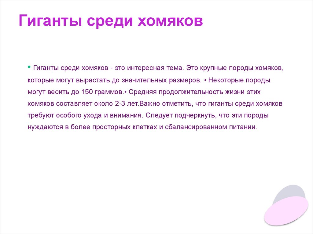 Гиганты среди хомяков• Гиганты среди хомяков - это интересная тема. Это крупные породы хомяков,