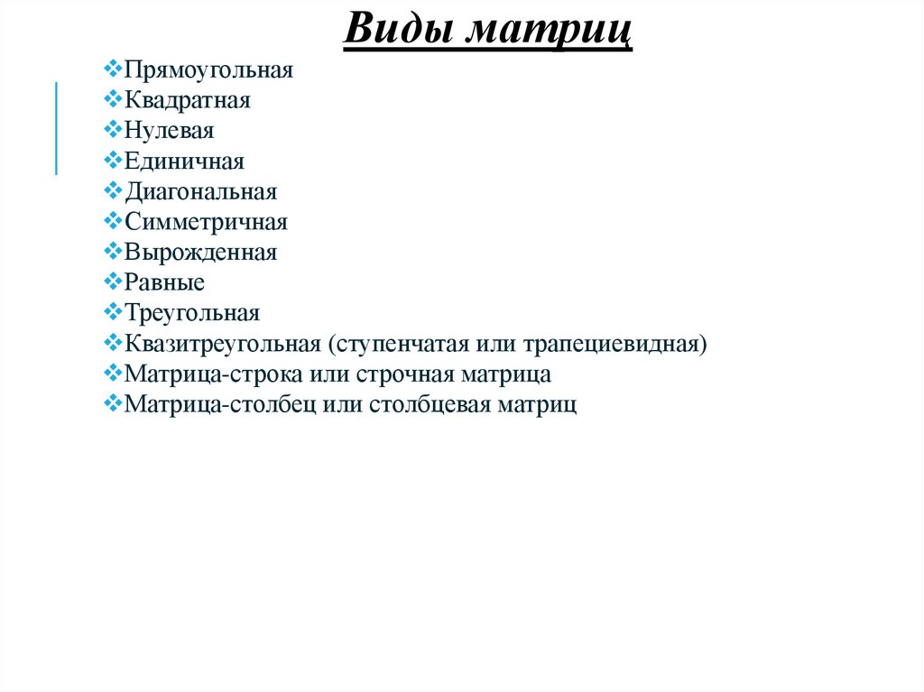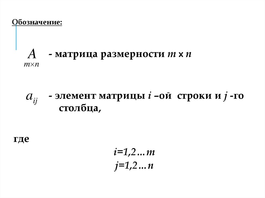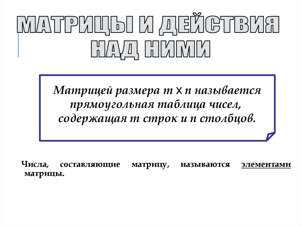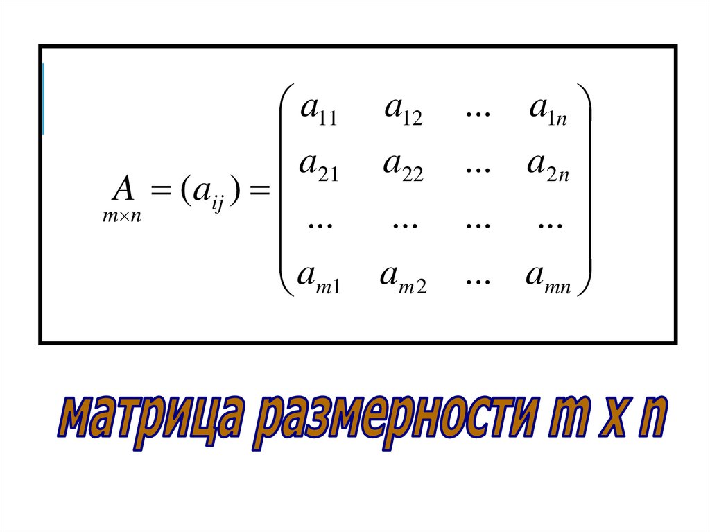 Матрицей размера m x n называетсяпрямоугольная таблица чисел,