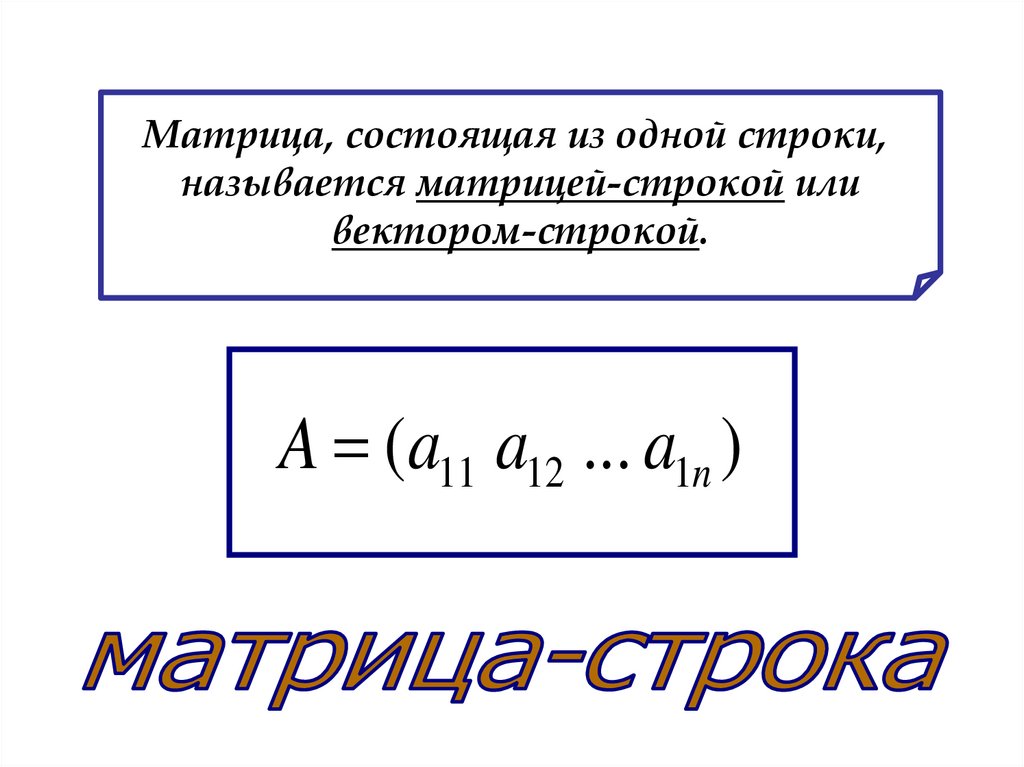 Матрица, состоящая из одной строки,называется матрицей-строкой или