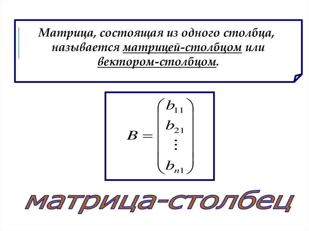 Матрица, состоящая из одного столбца,называется матрицей-столбцом или