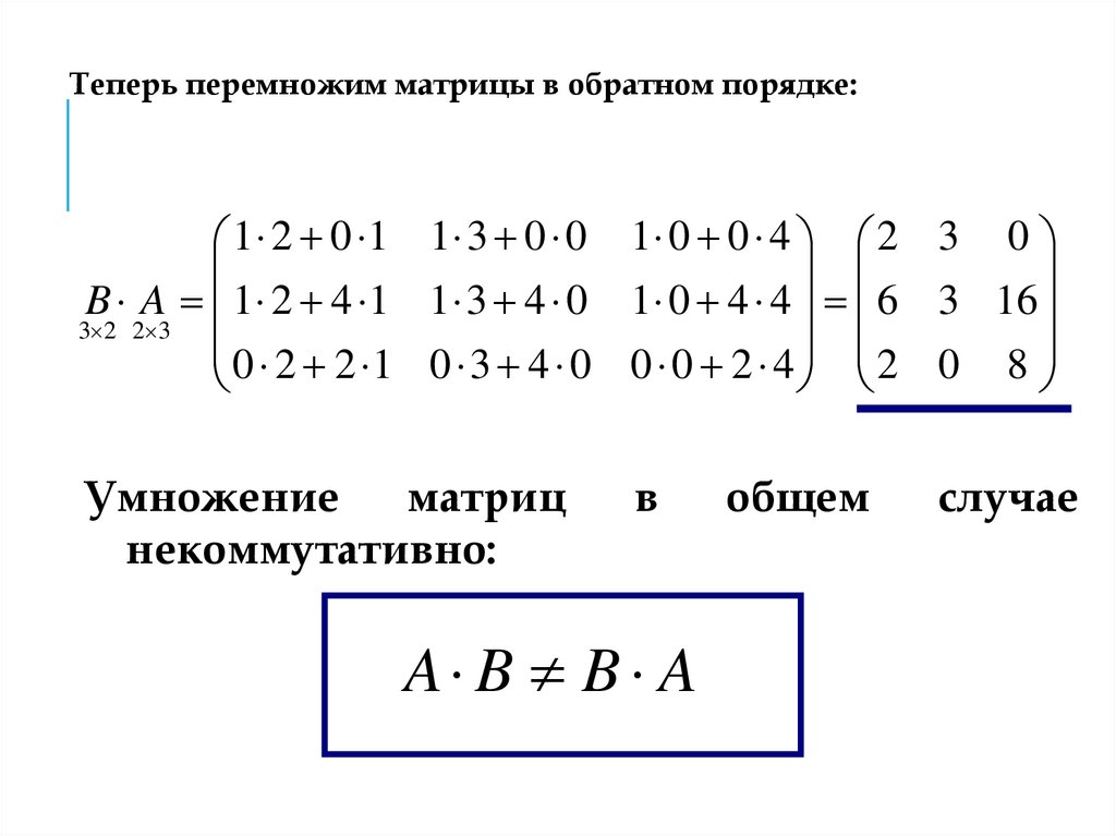Теперь перемножим матрицы в обратном порядке:1 2 0 1 1 3 0 0 1 0 0 4 2 3 0
