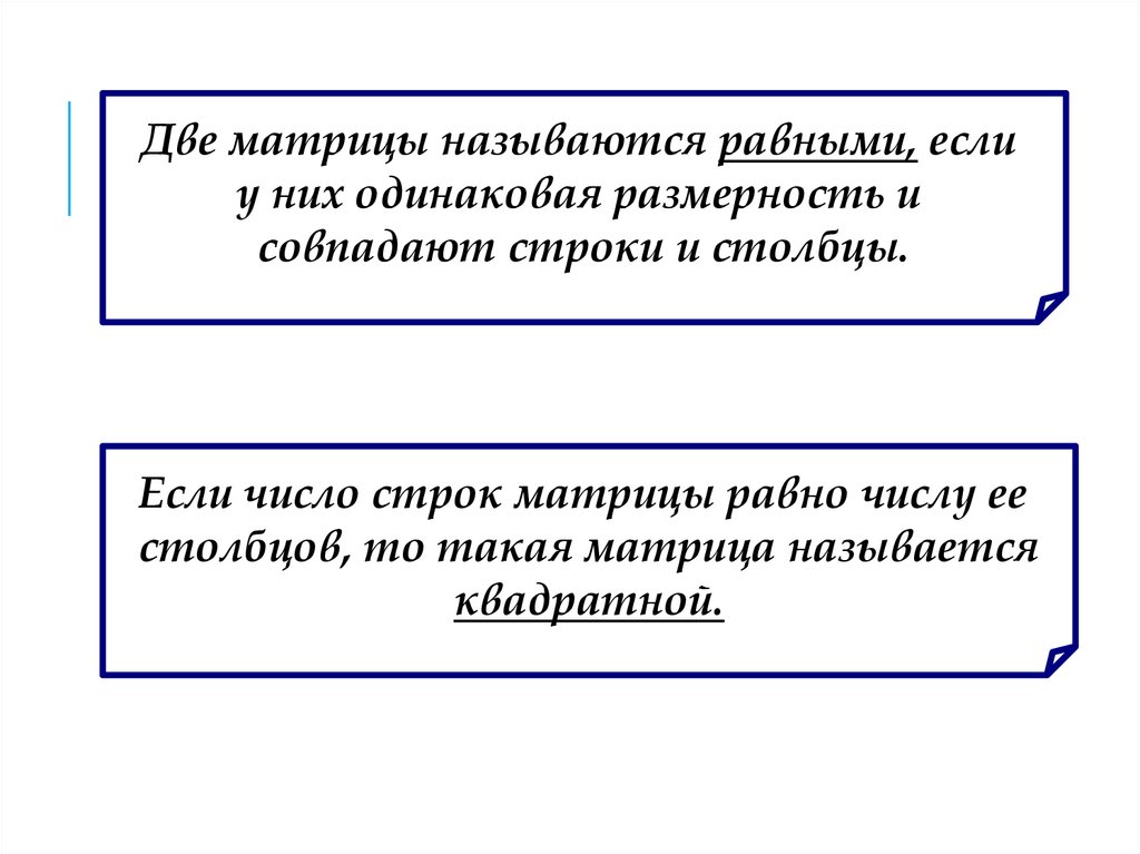Две матрицы называются равными, еслиу них одинаковая размерность и