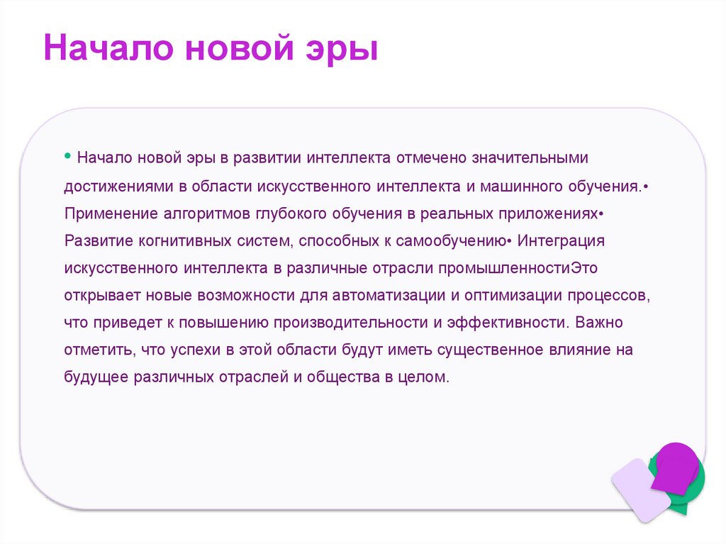 Начало новой эры• Начало новой эры в развитии интеллекта отмечено значительными