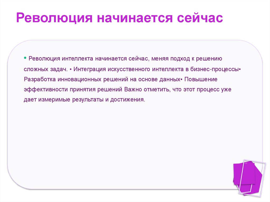 Революция начинается сейчас• Революция интеллекта начинается сейчас, меняя подход к решению