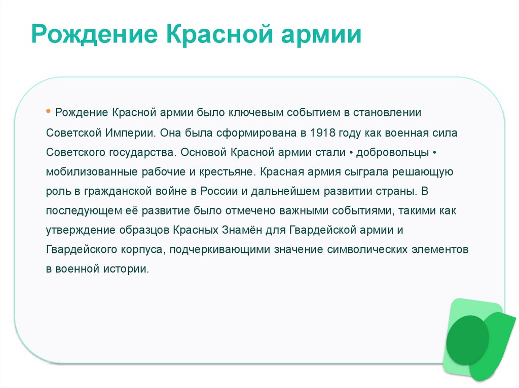 Рождение Красной армии• Рождение Красной армии было ключевым событием в становлении