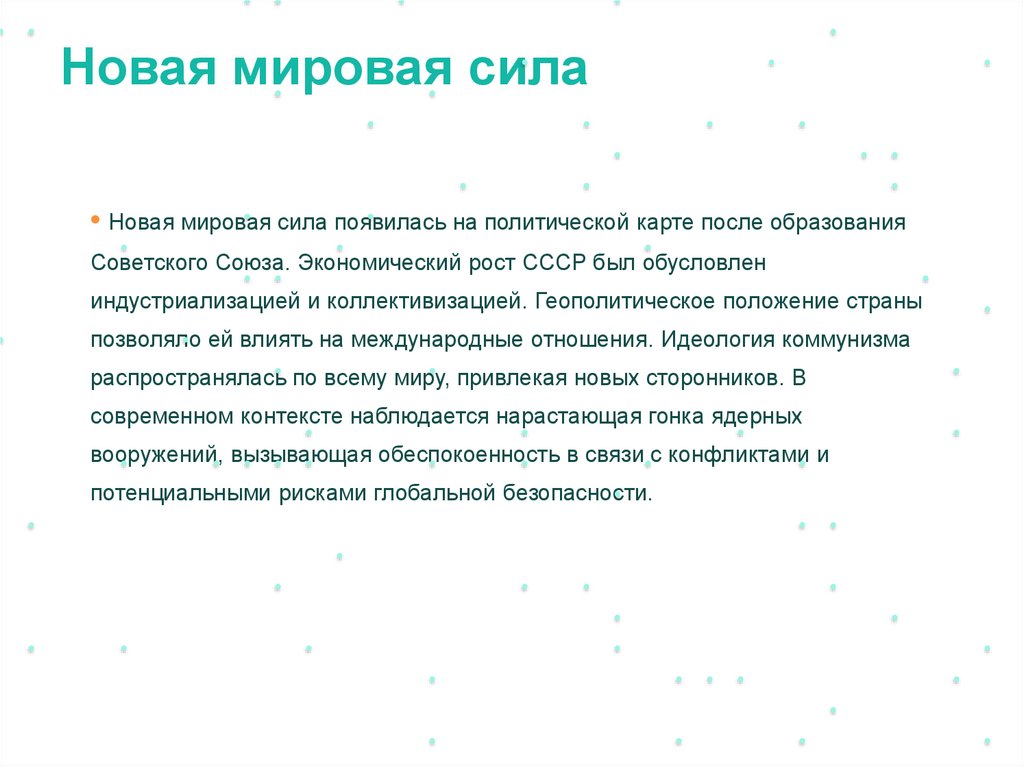 Новая мировая сила• Новая мировая сила появилась на политической карте после образования