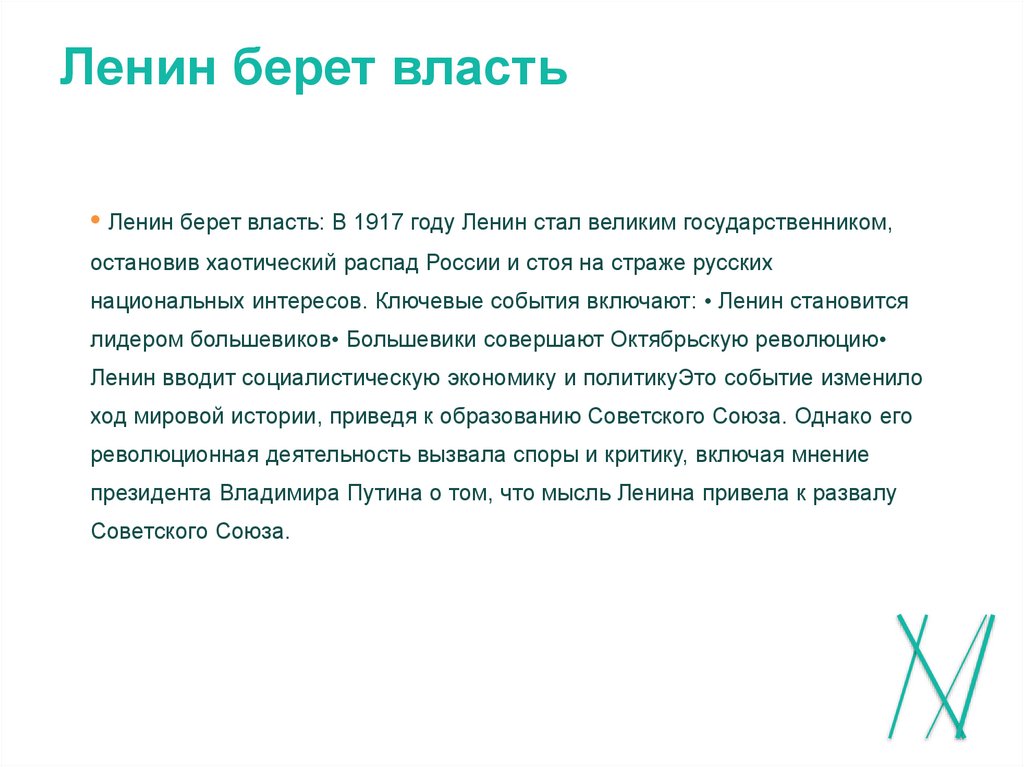 Ленин берет власть• Ленин берет власть: В 1917 году Ленин стал великим государственником,