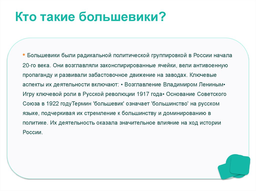 Кто такие большевики?• Большевики были радикальной политической группировкой в России начала