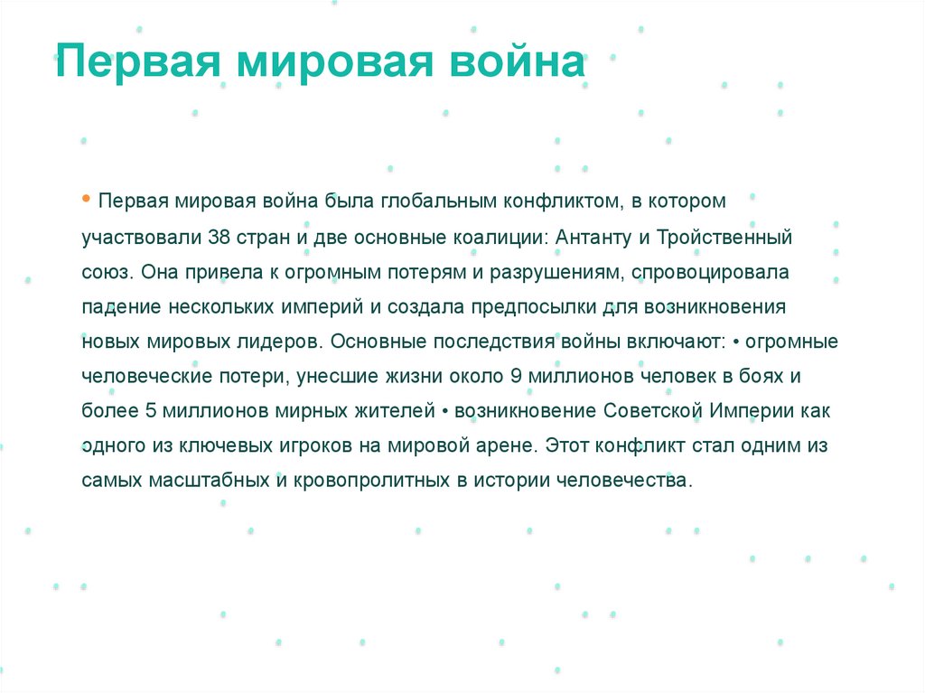 новых мировых лидеров. Основные последствия войны включают: • огромные