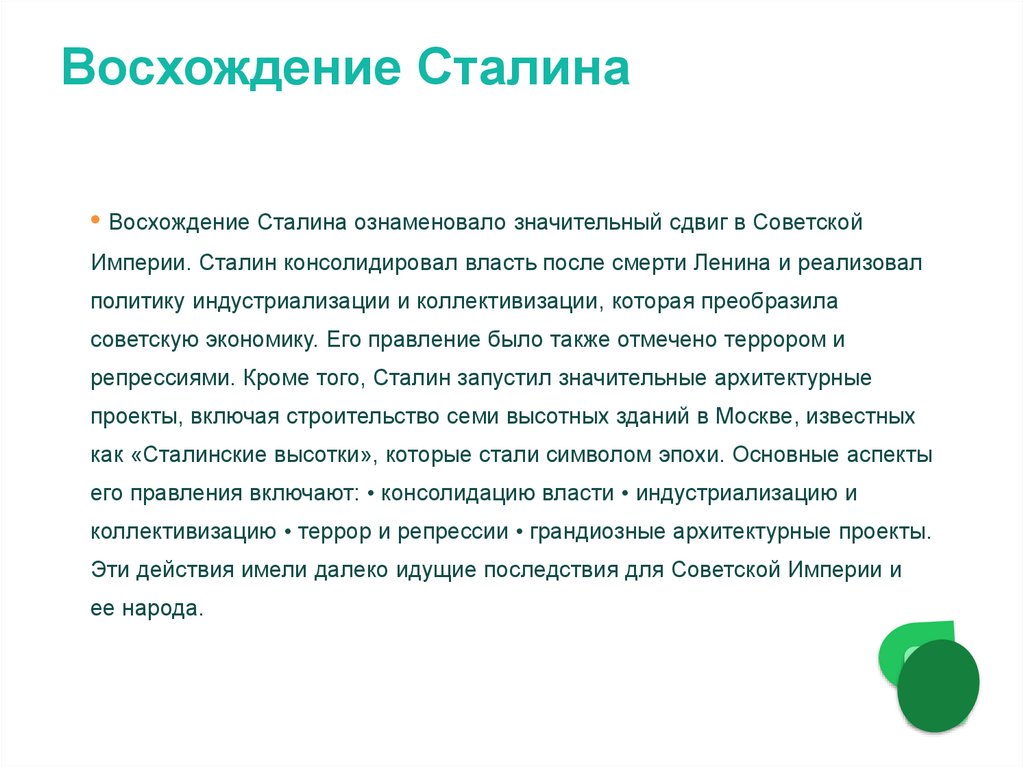 Восхождение Сталина• Восхождение Сталина ознаменовало значительный сдвиг в Советской