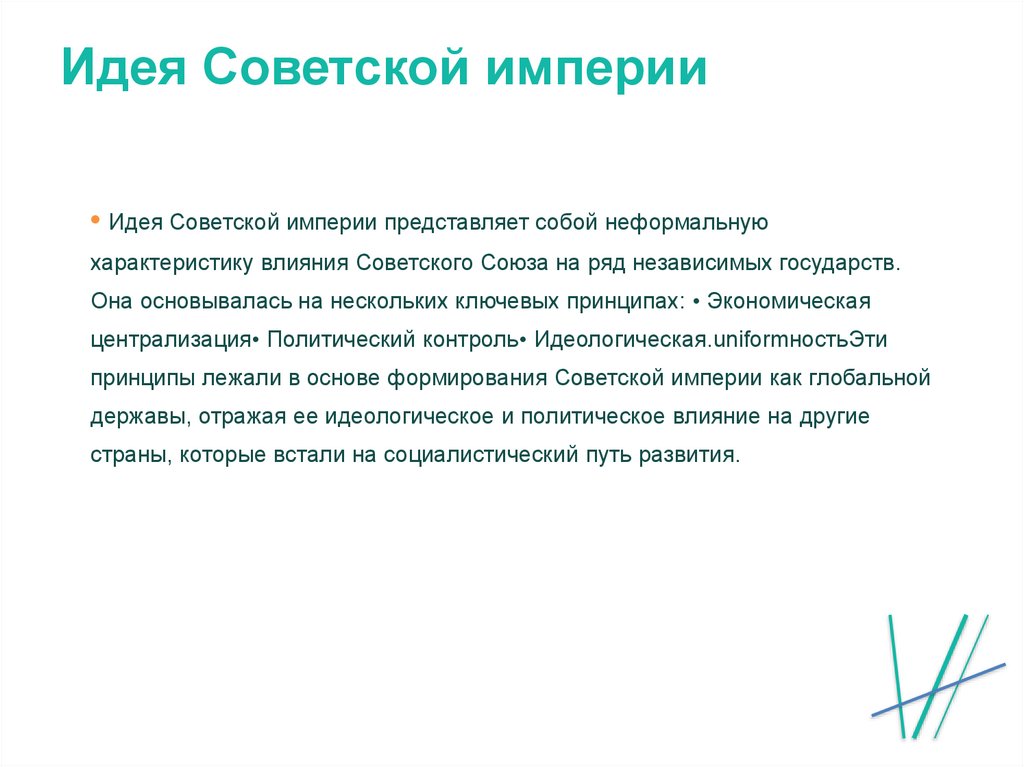 Идея Советской империи• Идея Советской империи представляет собой неформальную