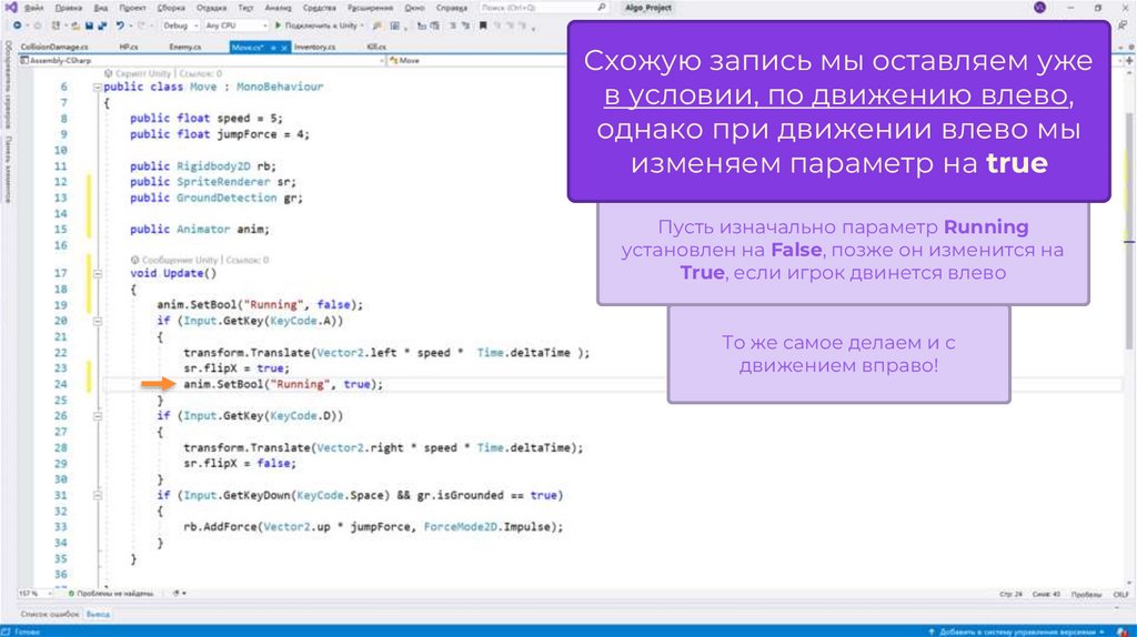 Схожую запись мы оставляем ужев условии, по движению влево,