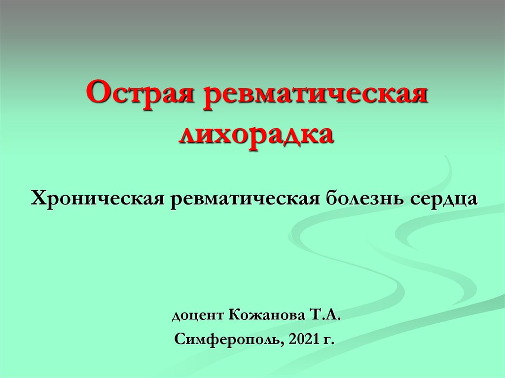 Хроническая ревматическая болезнь сердцадоцент Кожанова Т.А.