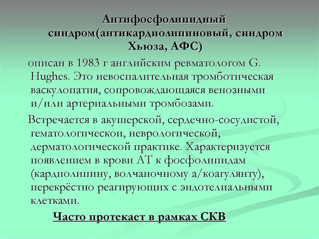 обострения при вторичном васкулите, АФС