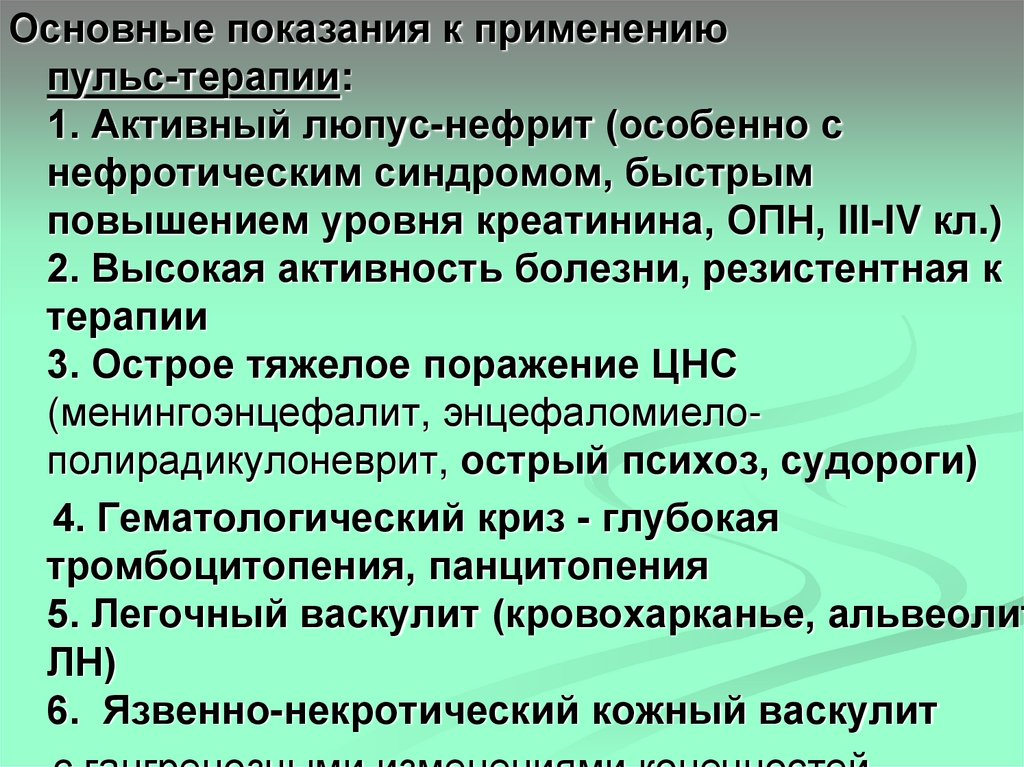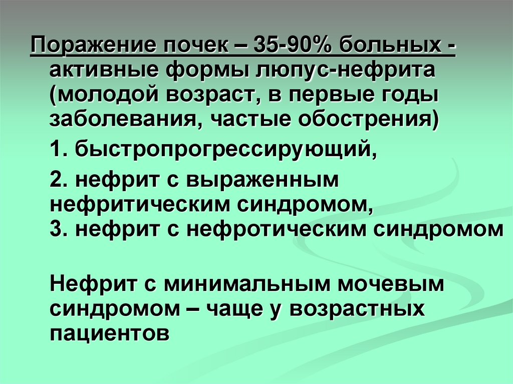 1. Активный люпус-нефрит (особенно с
