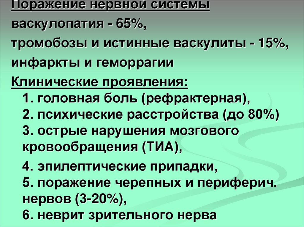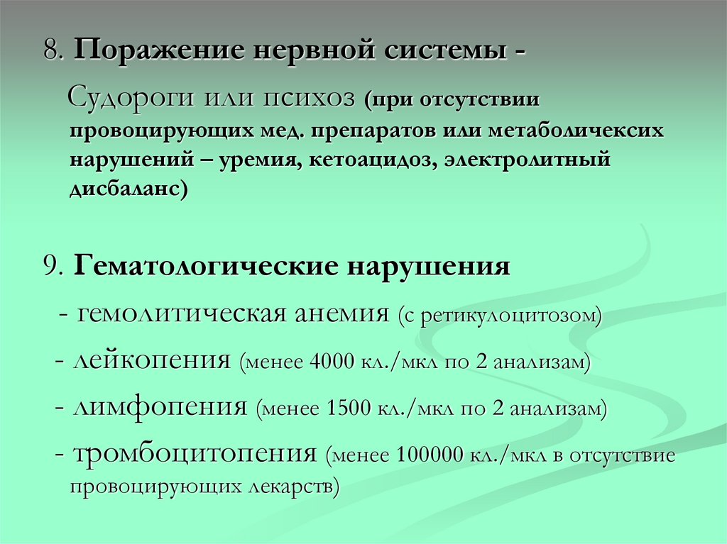 (менингоэнцефалит, энцефаломиелополирадикулоневрит, острый психоз, судороги)