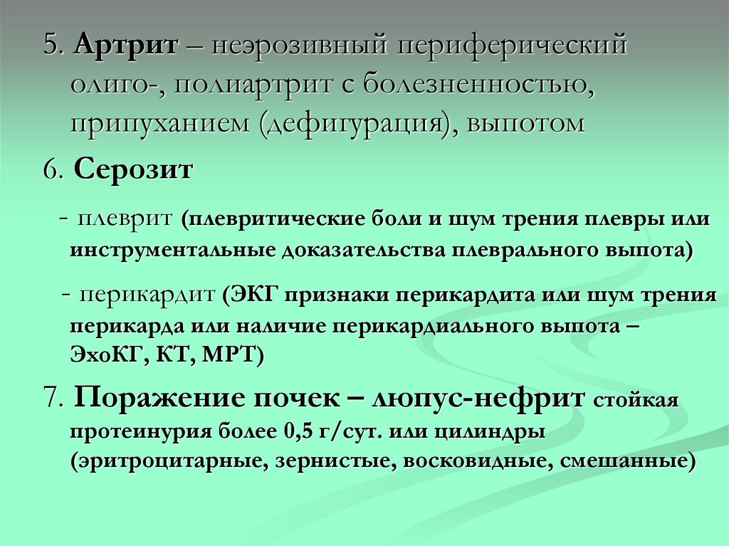 поражение кожи – «бабочка», полиартрит, серозных
