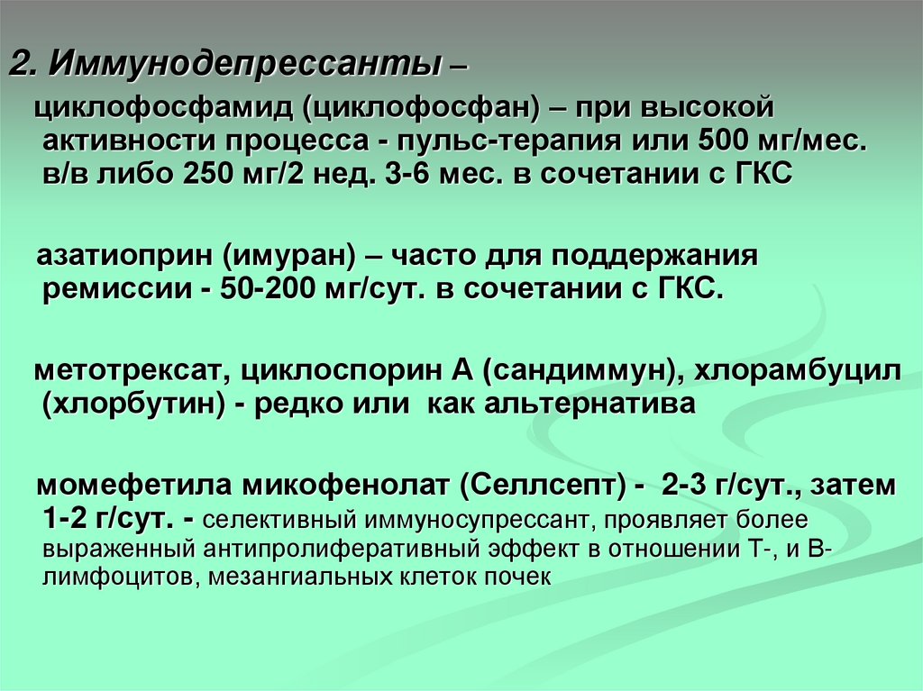 2. Иммунодепрессанты –циклофосфамид (циклофосфан) – при высокой