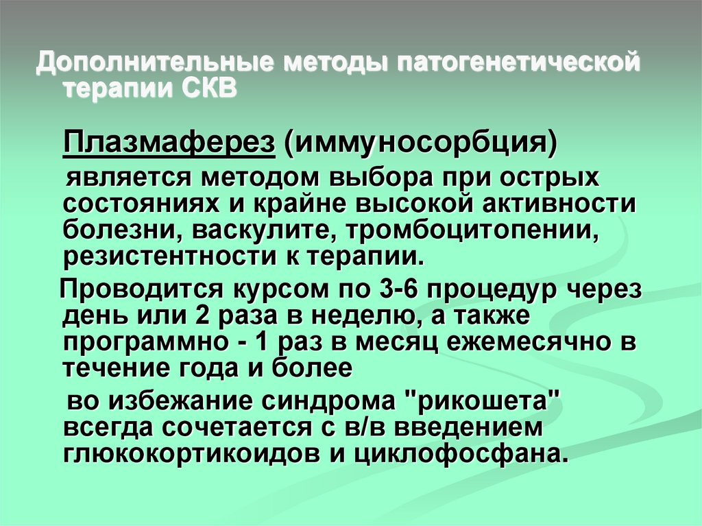 Дополнительные методы патогенетическойтерапии СКВ