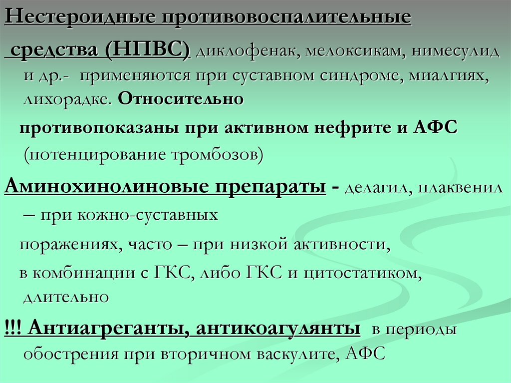 противопоказаны при активном нефрите и АФС