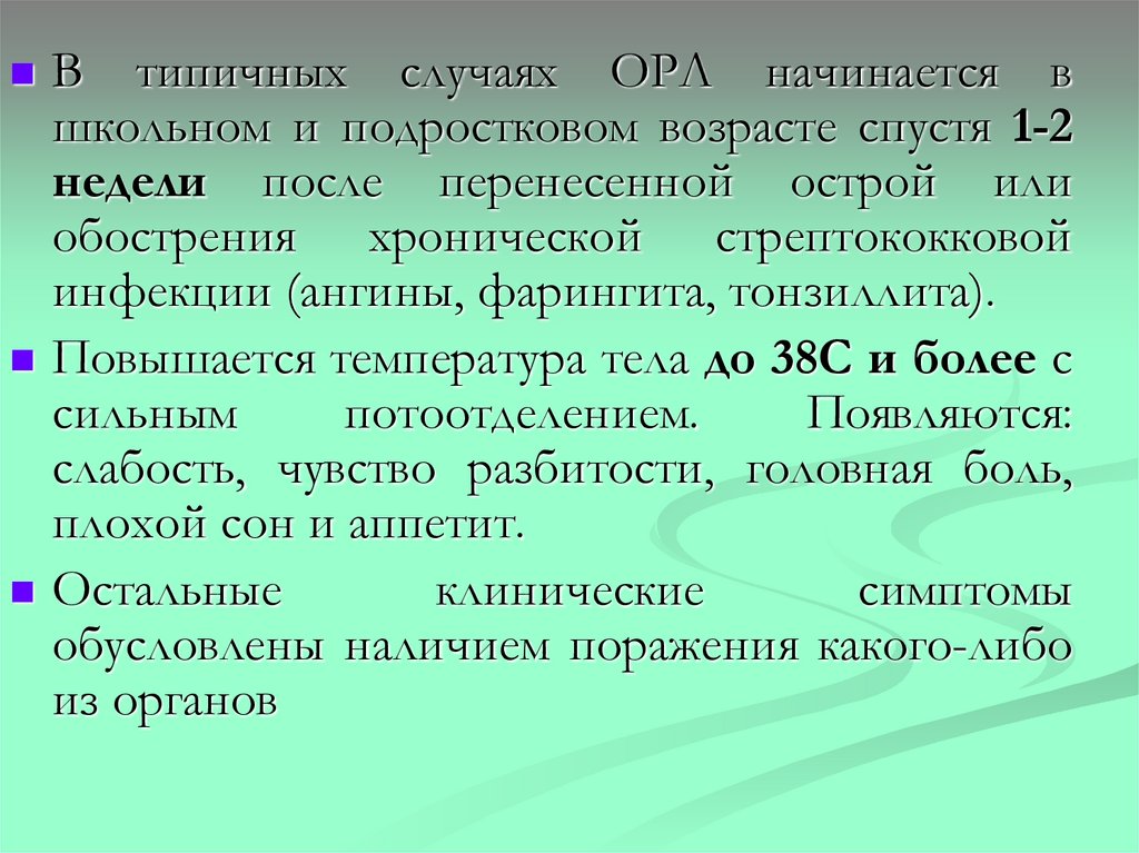 стрептококком группы А, и развитием ОРЛ.