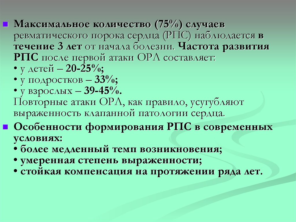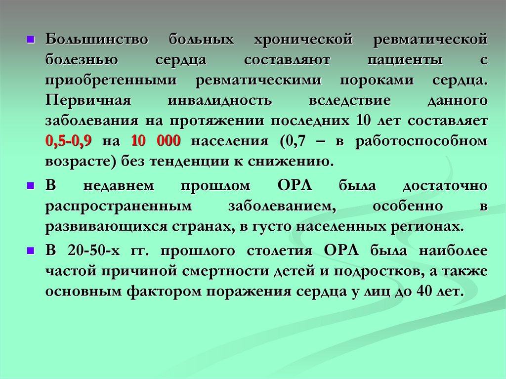 населения; заболеваемость ОРЛ – 4,6, ревматической