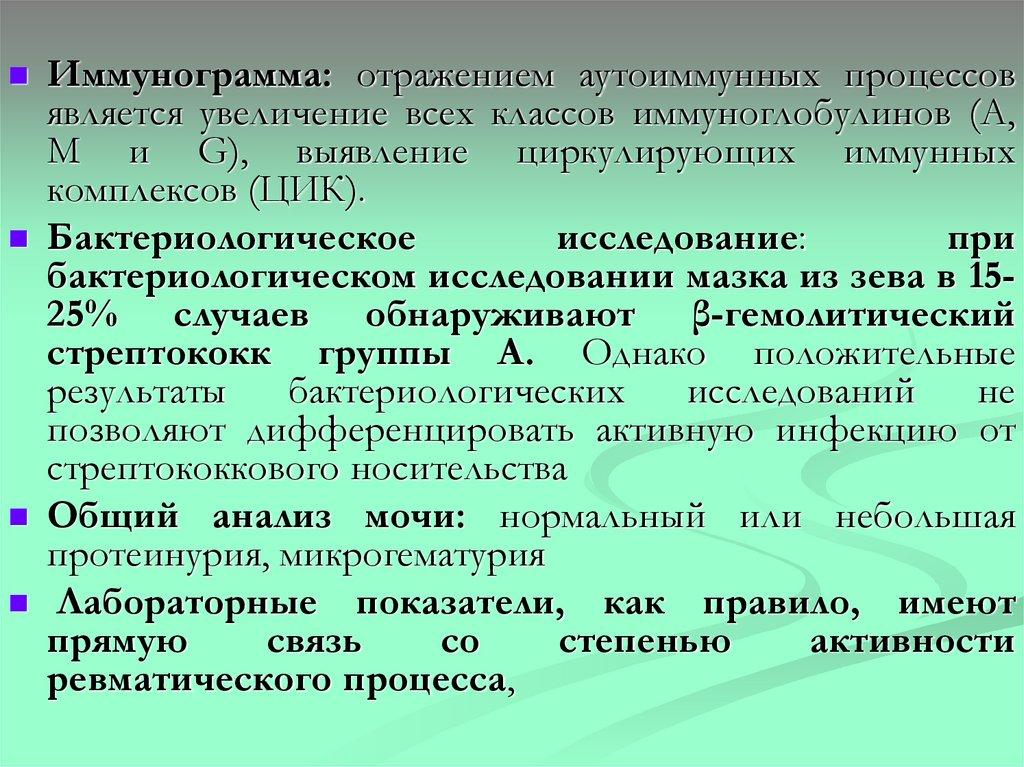 развитии острого ревматизма главную роль играет стрептококковая