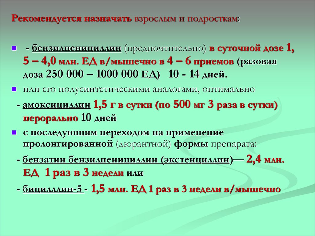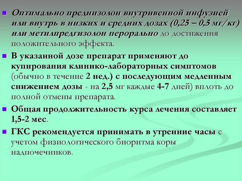 нормальный) – 0,4- 2 мг/кг/сут 4-5 дней: