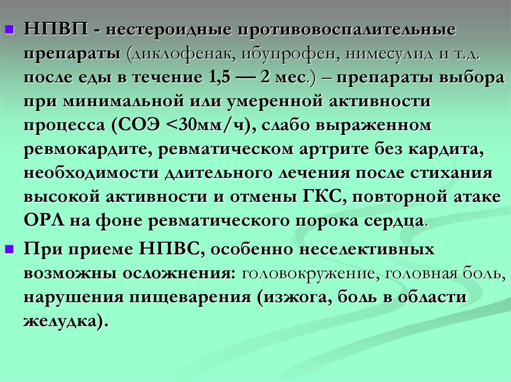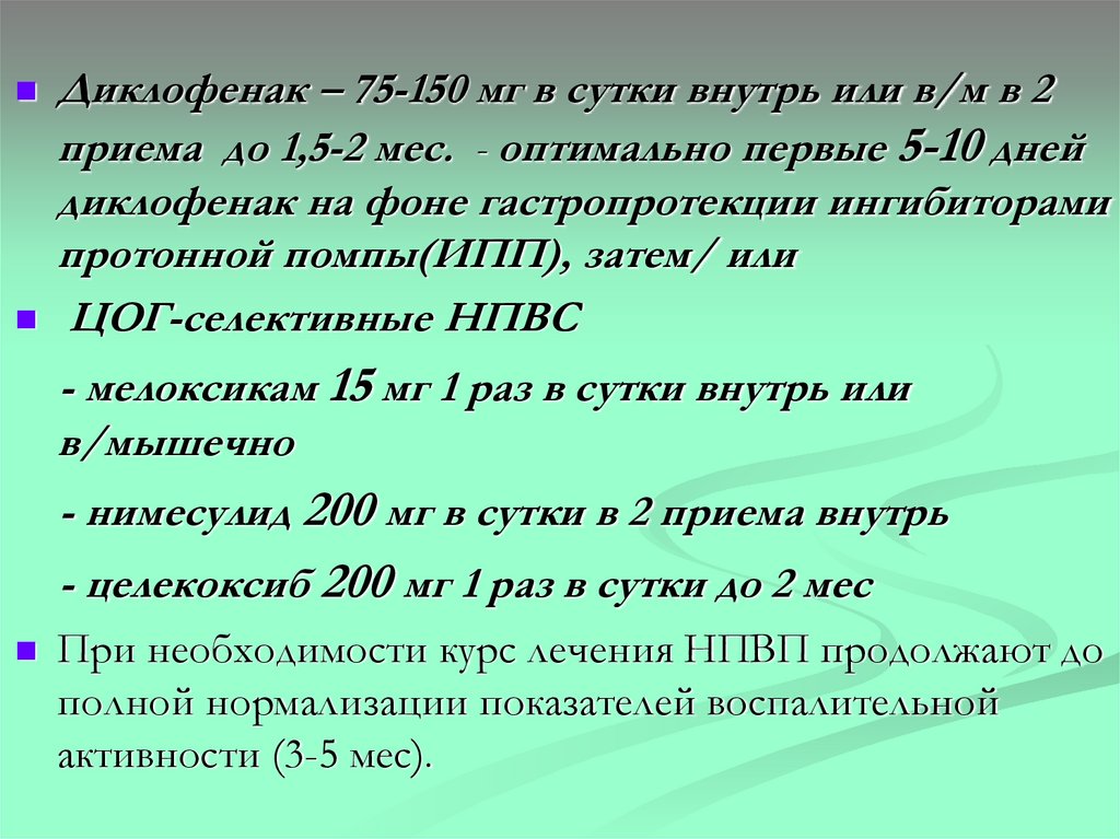 Нестероидные противовоспалительныесредства (НПВС) диклофенак, мелоксикам, нимесулид
