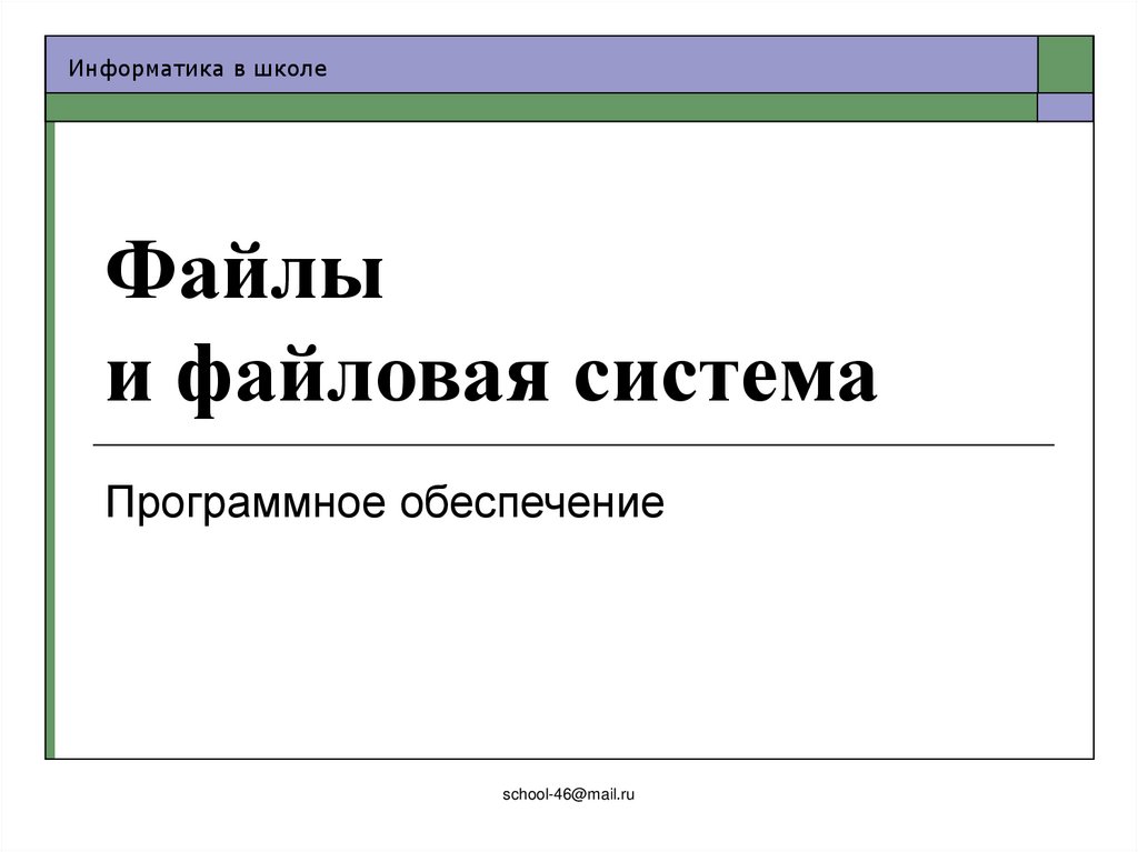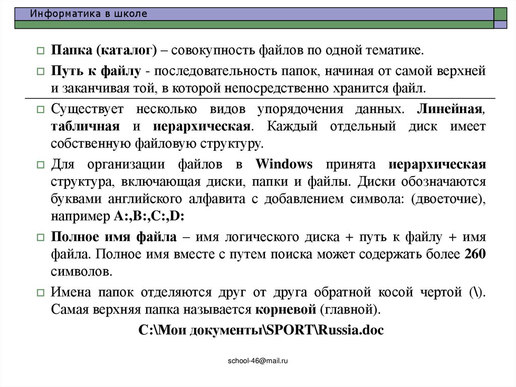 Информатика в школеПапка (каталог) – совокупность файлов по одной тематике.