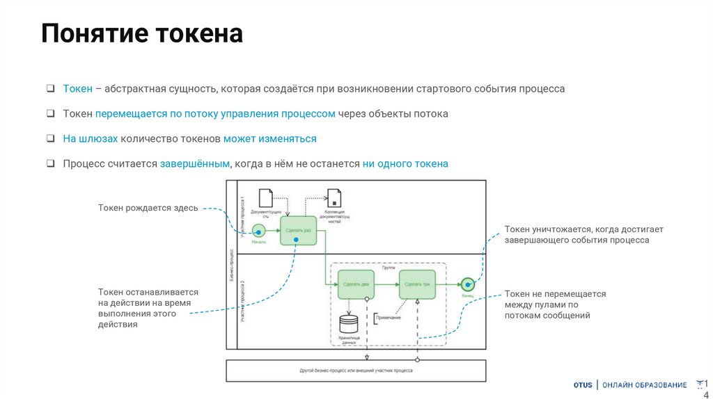 Понятие токенаТокен – абстрактная сущность, которая создаётся при возникновении стартового события процесса