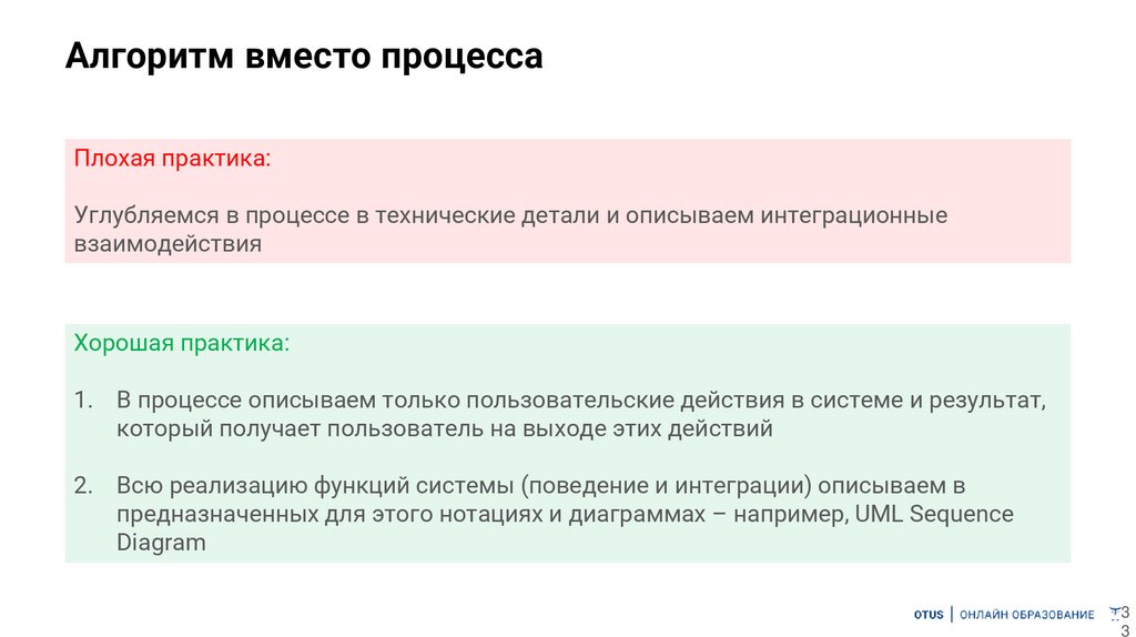 1. В процессе описываем только пользовательские действия в системе и результат,