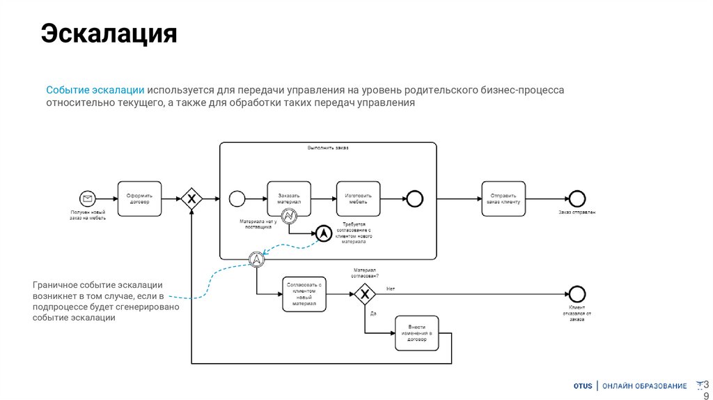 ЭскалацияСобытие эскалации используется для передачи управления на уровень родительского бизнес-процесса