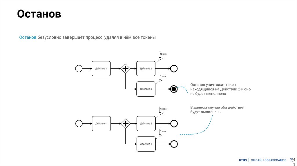 ОстановОстанов безусловно завершает процесс, удаляя в нём все токены