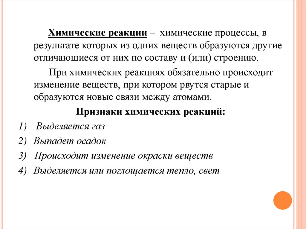 Химические реакции – химические процессы, врезультате которых из одних веществ образуются другие