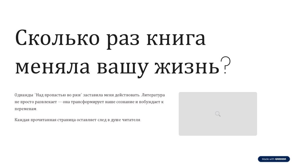 Однажды "Над пропастью во ржи" заставила меня действовать. Литература