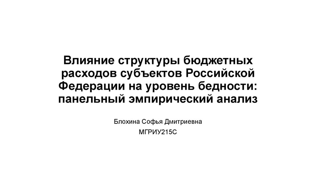 1. Влияние структуры бюджетных расходов субъектов Российской Федерации на уровень бедности: панельный эмпирический анализ