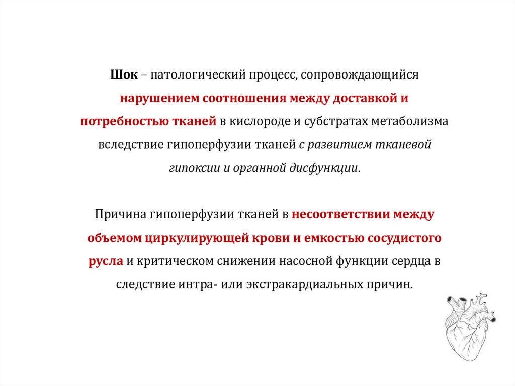 Итого: КШ - это критическая гипоперфузия тканей с несоответствием