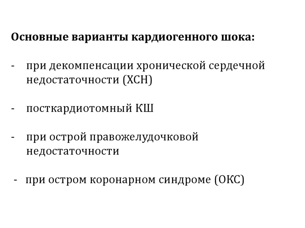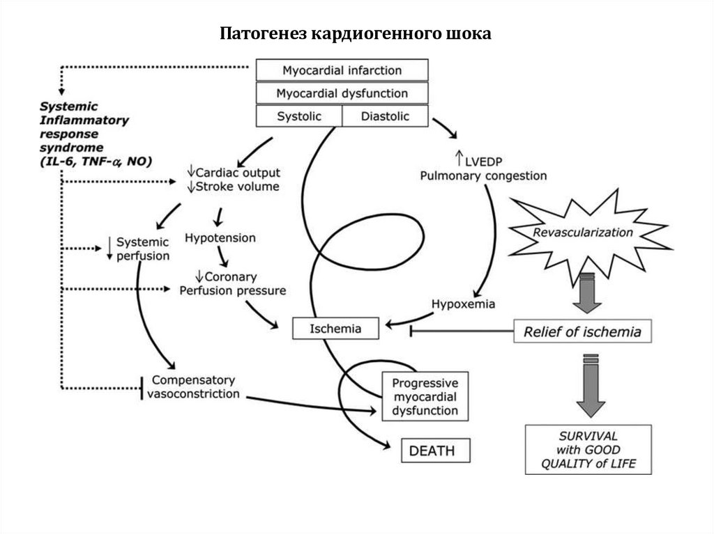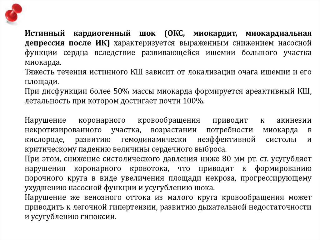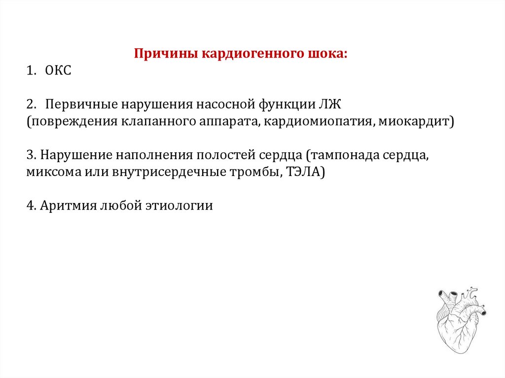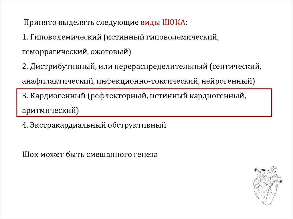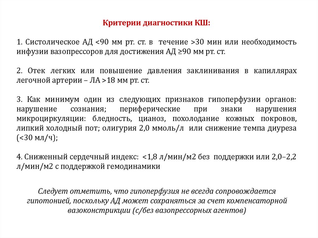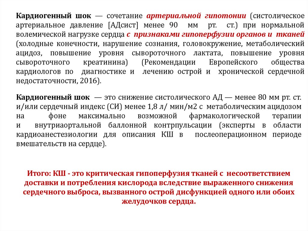 Кардиогенный шок — сочетание артериальной гипотонии (систолическоеартериальное давление [АДсист] менее 90 мм рт. ст.) при нормальной