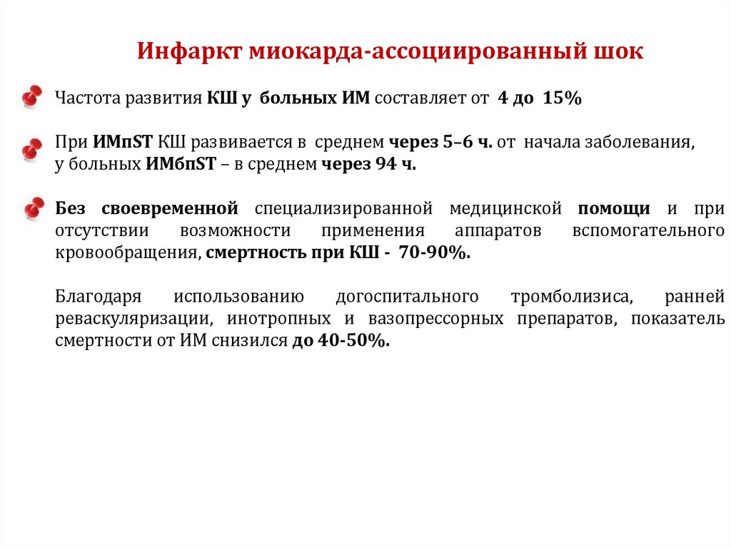 • Для улучшения исхода лечения у пациента с ИМпST и кардиогенным