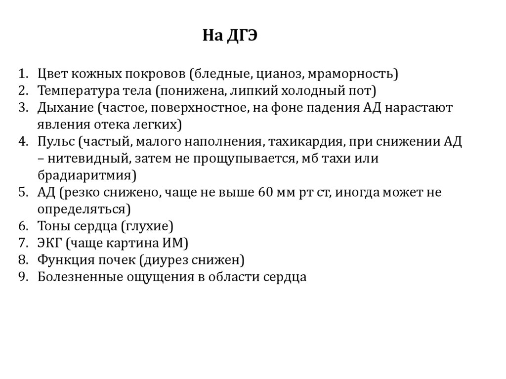 (холодные конечности, нарушение сознания, головокружение, метаболический